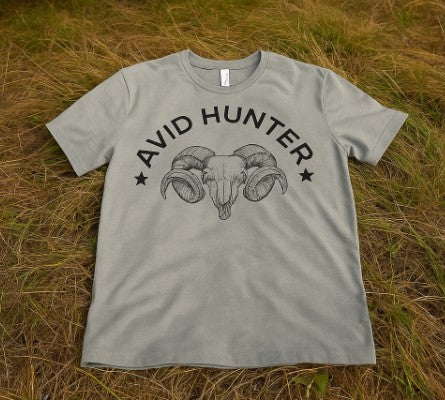 Show your passion for the hunt with rugged style. The Ram Dead Head t-shirt features a bold ram skull graphic framed with Avid Hunter branding — a symbol of strength, grit, and respect for the outdoors.